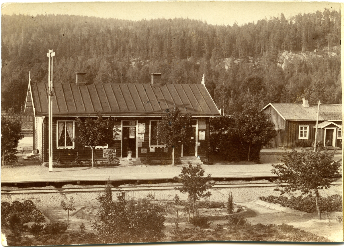 Station anlagd 1873. Stationshuset, två våningar i trä, nybyggt 1924. Mekanisk växelförregling . Den första stationsbyggnaden envånings i trä. Ny station byggd 1919