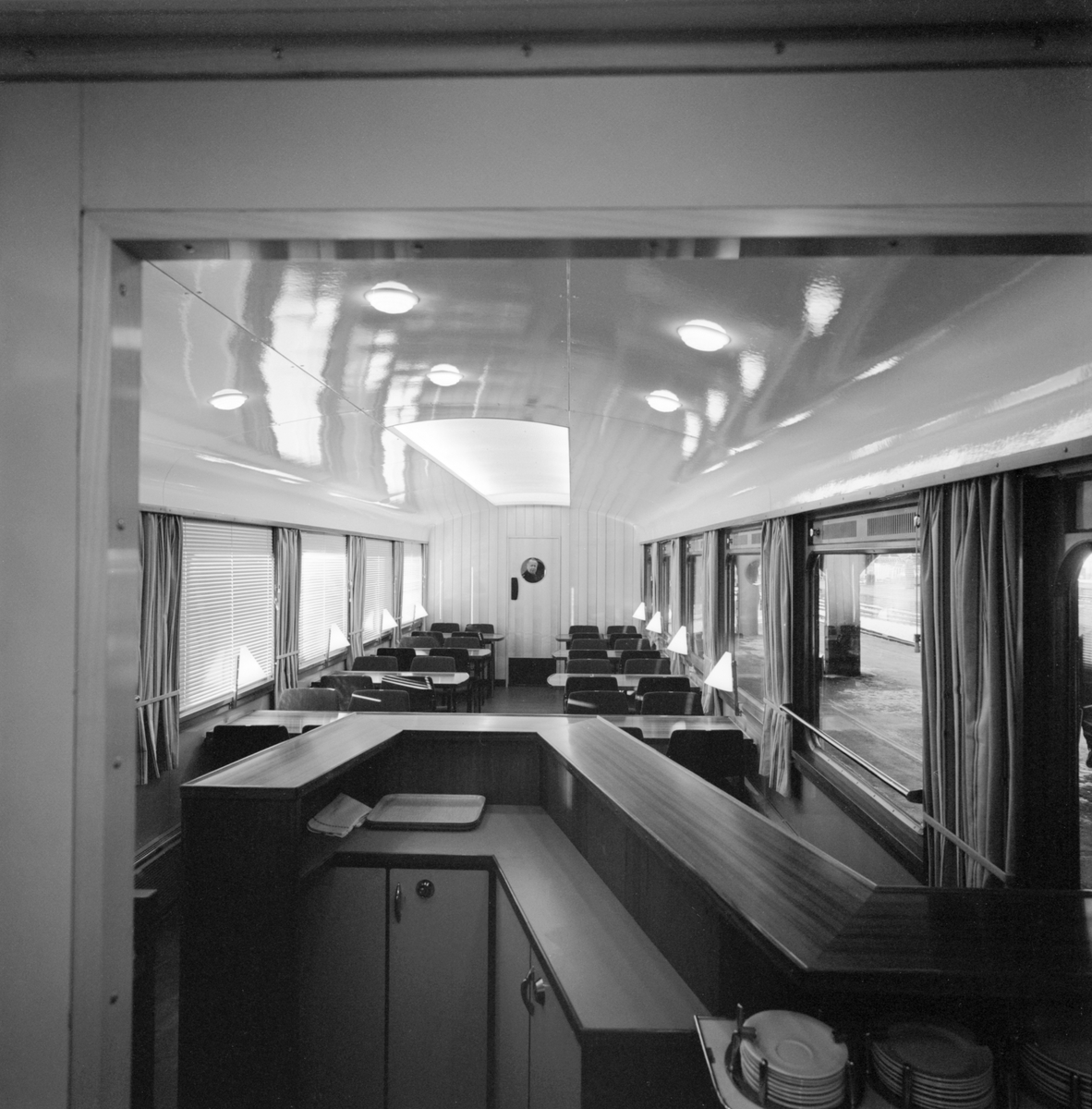 Statens Järnvägar, SJ RC01 3218. Buffévagn, serveringsavdelning med S-formad bardisk