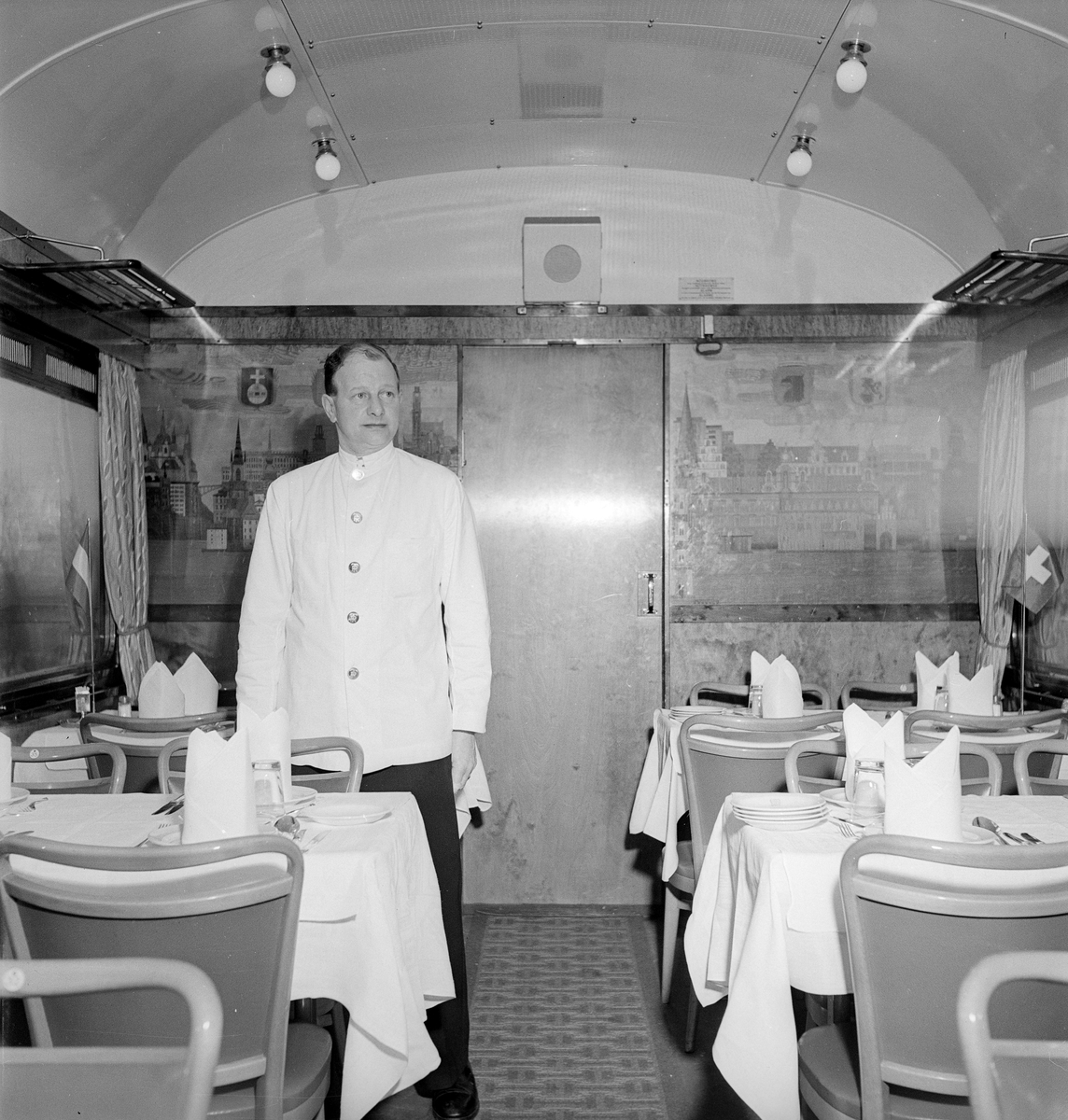 Statens Järnvägar, SJ R03b 3749. Restaurangvagn. Halva vagnen hade matsal med plats för 48 gäster och den andra halvan hade kök och korridor förbi. Vagnen hyrdes ut till företag som konferensvagn. 2002 köptes vagnen av Sveriges Järnvägsmuseum i Gävle.