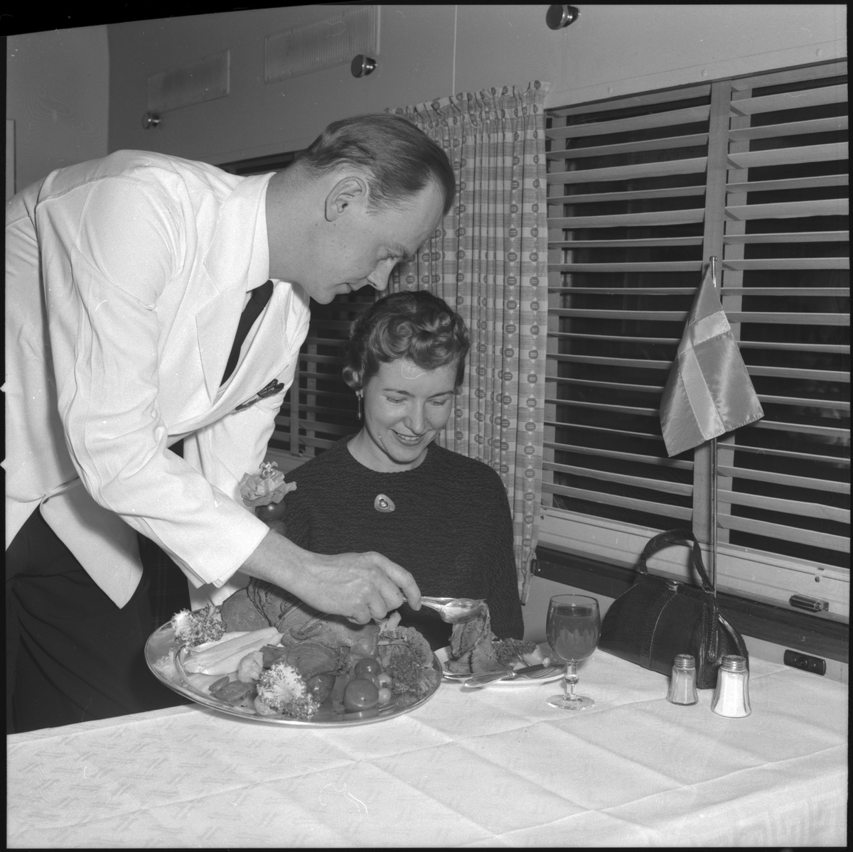 Statens Järnvägar, SJ R03. Interiörmotiv med statister.