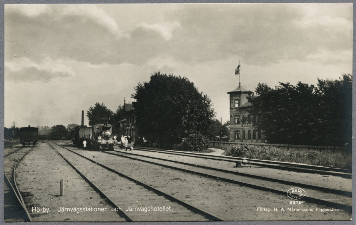 Tåg i trafik vid Hörby station. Östra Skånes Järnvägar, ÖSJ lok 4.