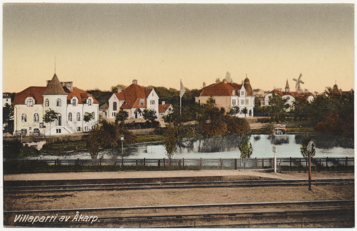 Stadsvy från Åkarp med Åkarps stations bangård i förgrunden.