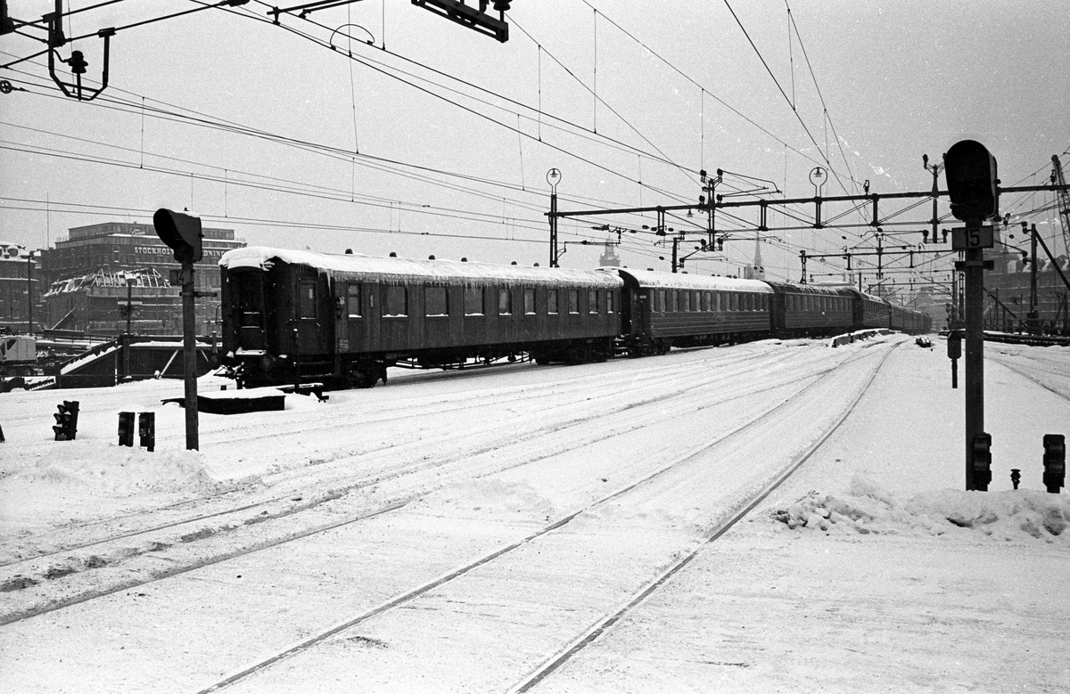 Utfarten Stockholm Central mot söder, över Tegelbacken och Norra järnvägsbron mot Riddarholmen. Sträckan Stockholm Central - Riddarholmen.