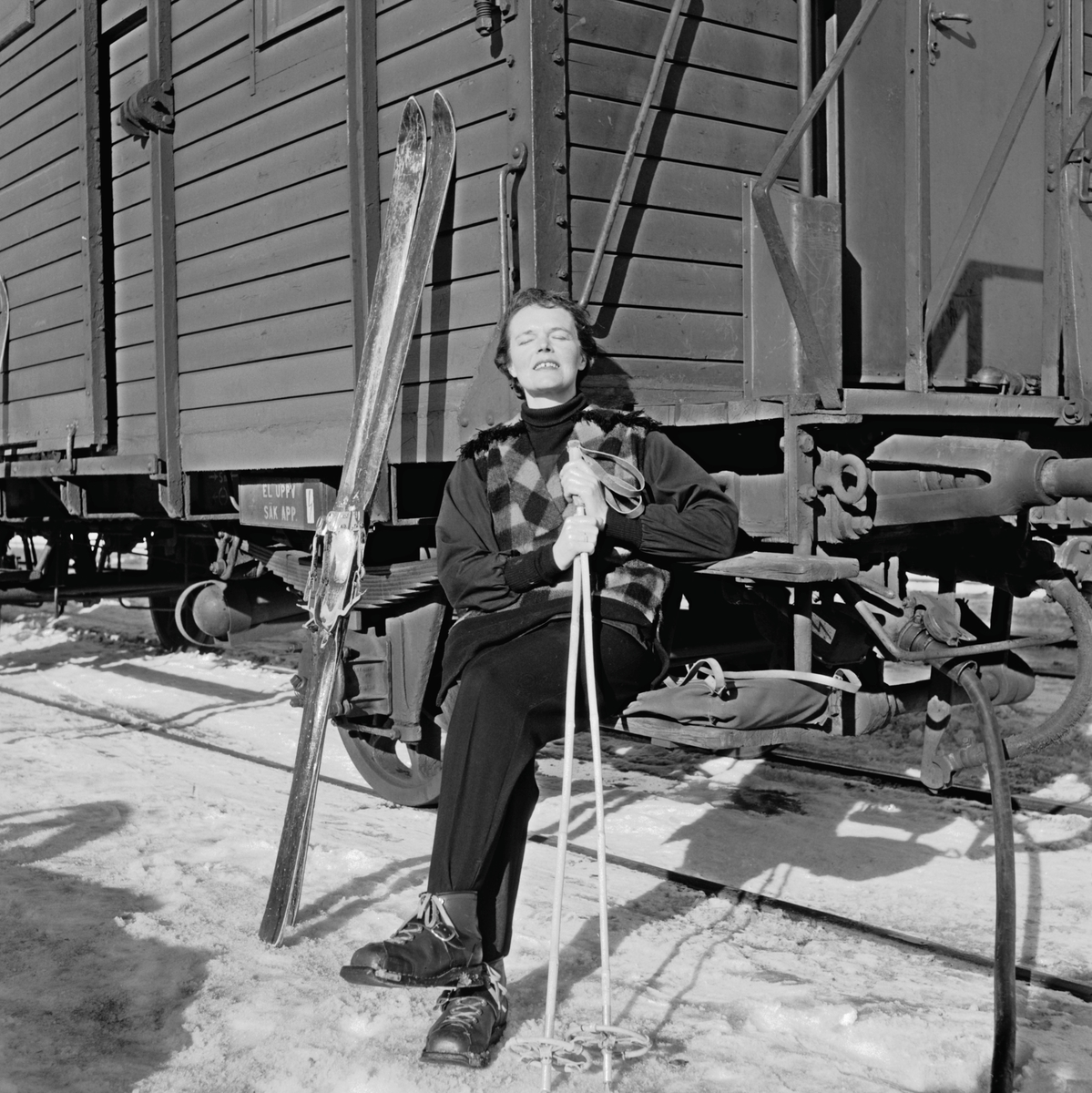 Statens Järnvägar, SJ Tåghem, resenärer vid godsvagn.
