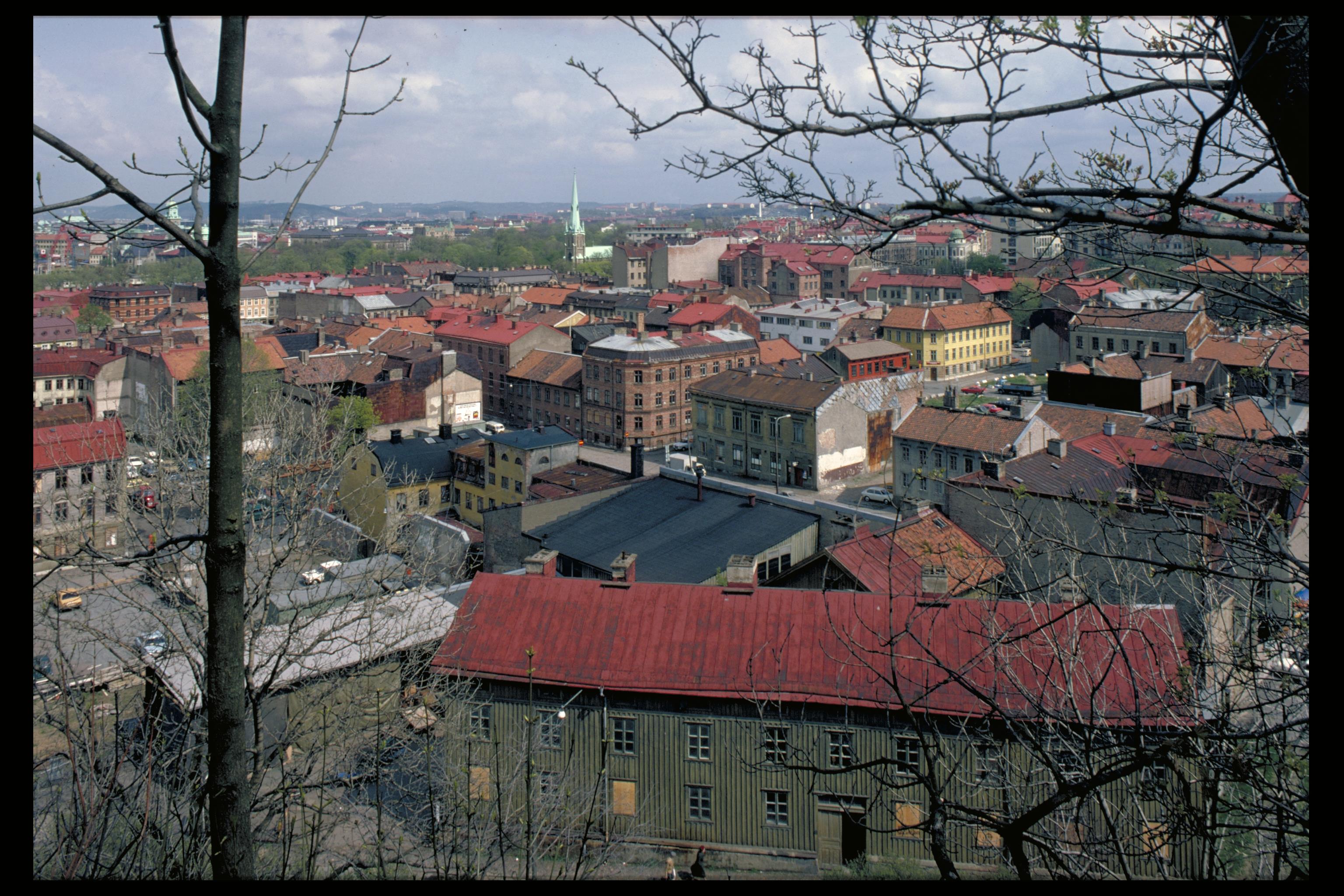 Haga från Skansberget. Hagakyrkans torn syns i bakgrunden. Bilden troligen från slutet av 1970-talet.