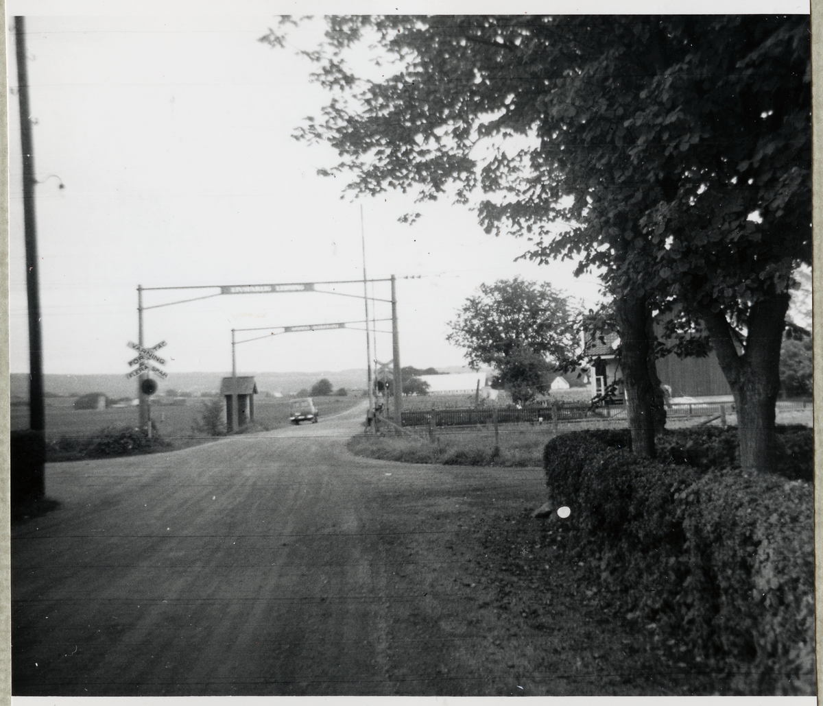 Järnvägsövergång vid Vejbyslätt på linjen mellan Förslövsholm och Skälderviken.
