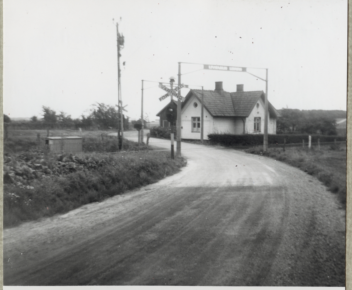 Järnvägsövergång vid Vejby banvaktstuga på linjen mellan Vejbyslätt och Skälderviken.