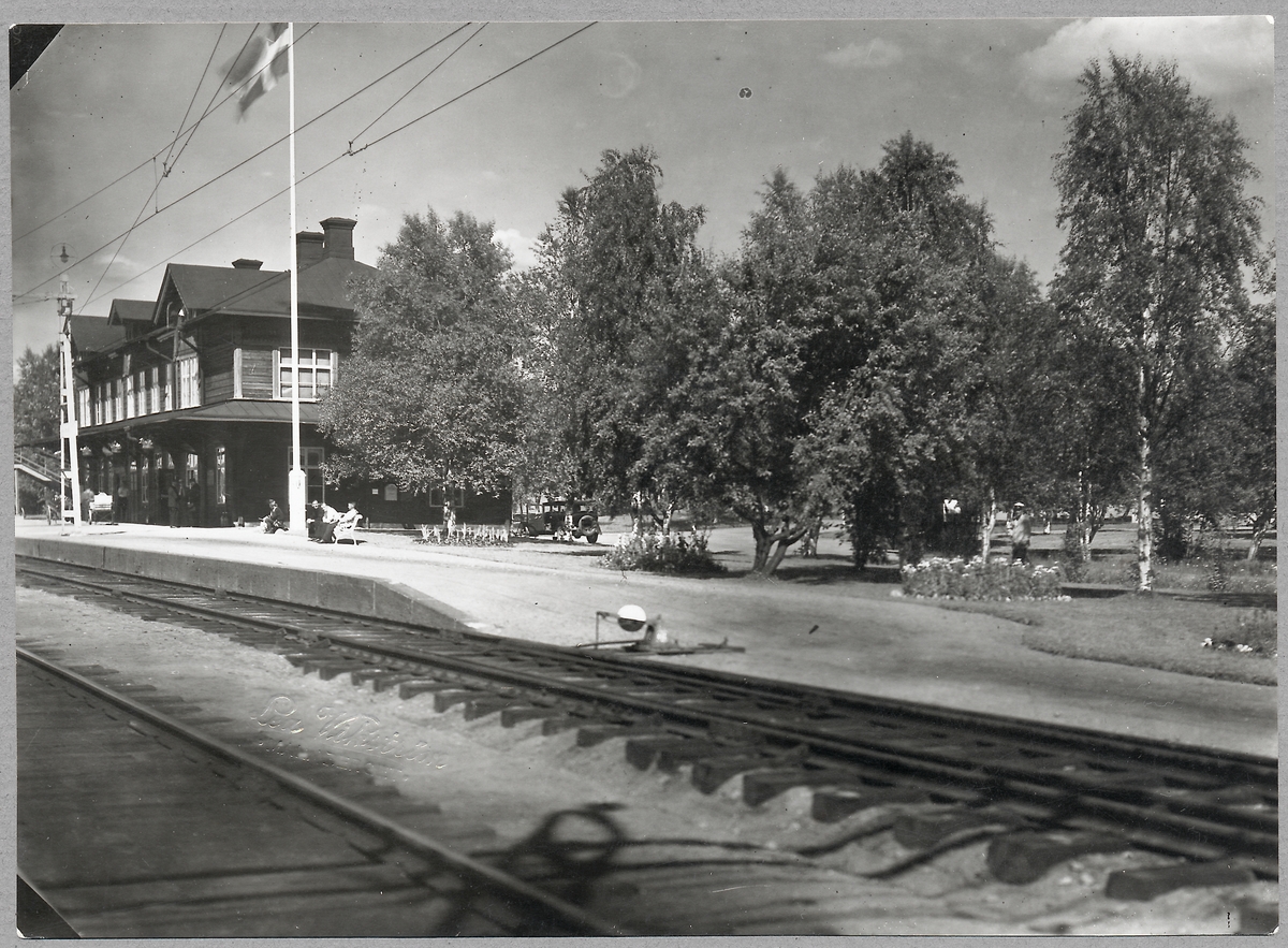 Titel: Gällivare. Tvåvånings stationshus av timmer, byggt av SJ. Arkitekt Folke Zettervall.