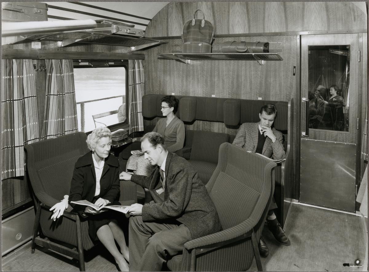 Interiör av en Trafikaktiebolaget Grängesberg - Oxelösunds Järnvägar, TGOJ personvagn.