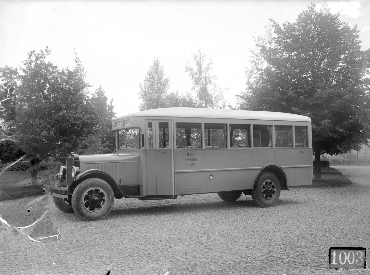 Reo-buss Nora Bergslags Järnväg, NBJ 14. Bussen tillverkades vid AB Svenska Järnvägsverkstäderna för Nora Bergslags Järnväg.