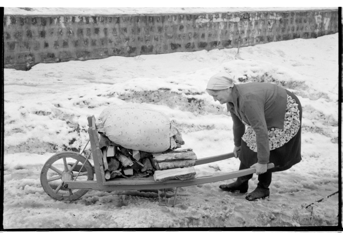 Kvinna med skottkärra.