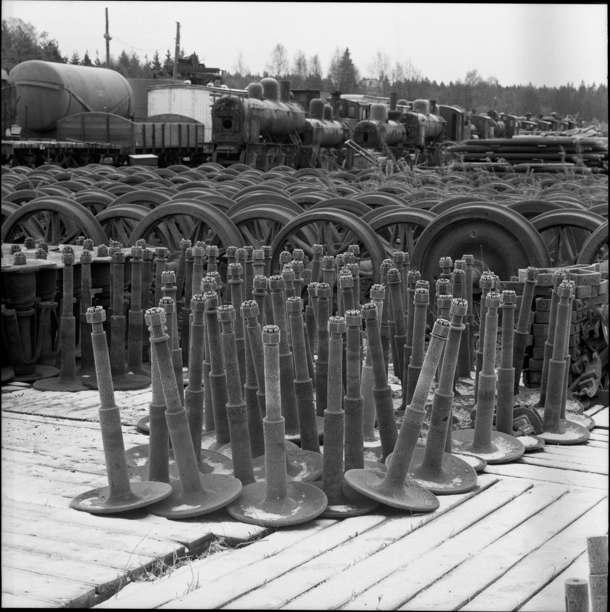Ånglok, vagnshjul och 98- buffertar mm på Vislanda skrotplats.