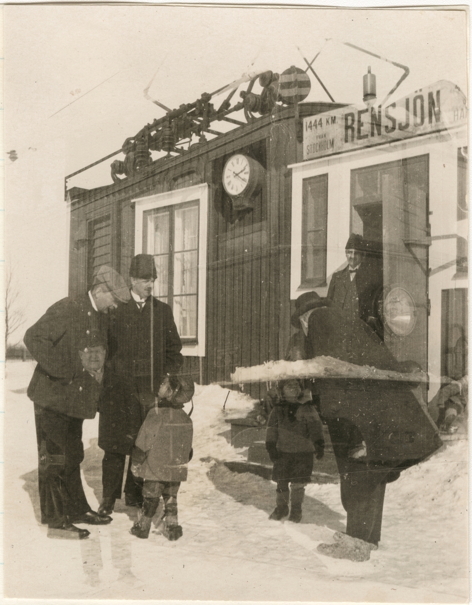 Byråchef vid Statens Järnvägars Maskinbyrå, Karl August Svensson, på tjänsteresa. Här vid Rensjön station.