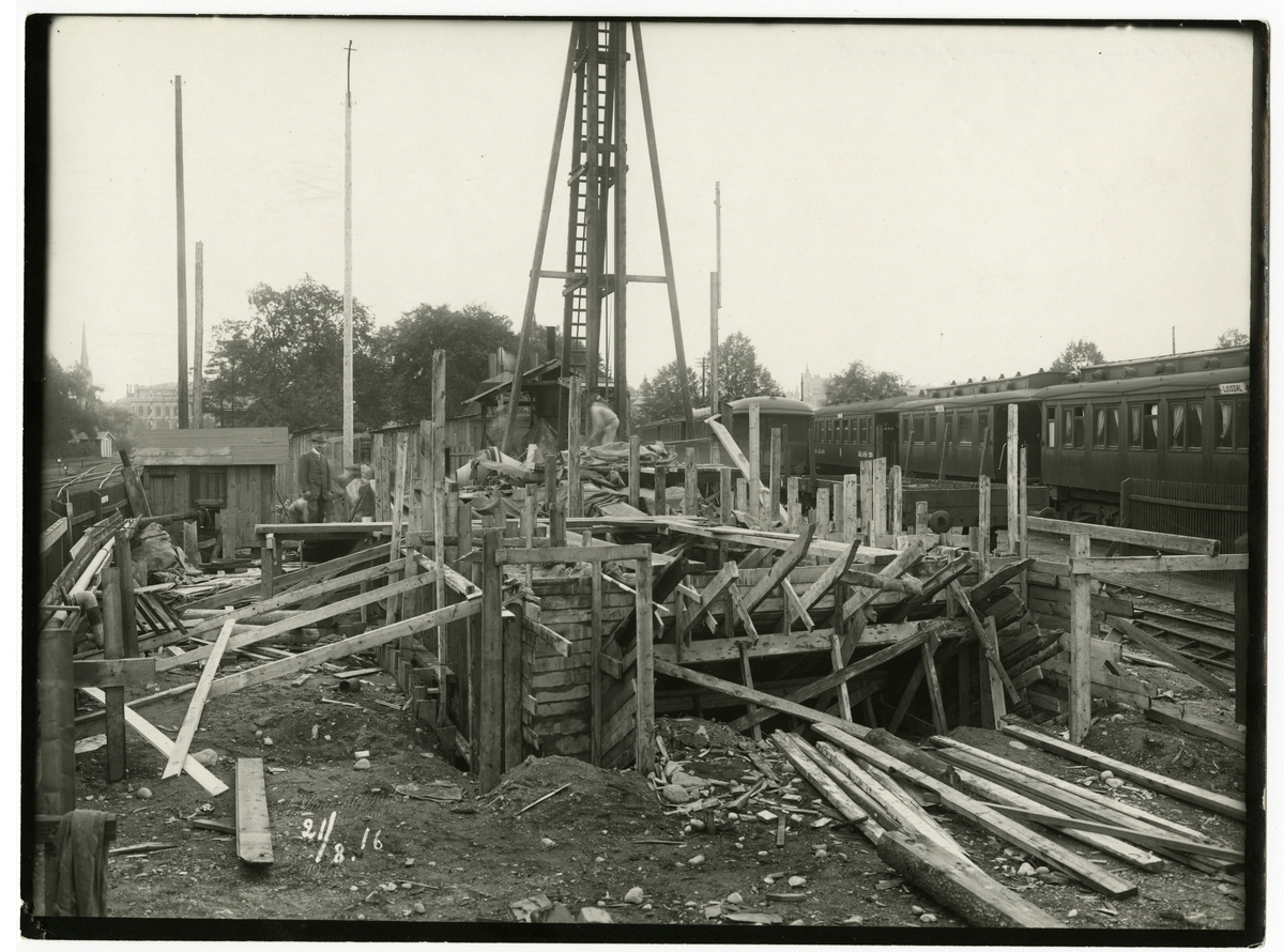 Pålning för persontunnel vid Stockholms Central.