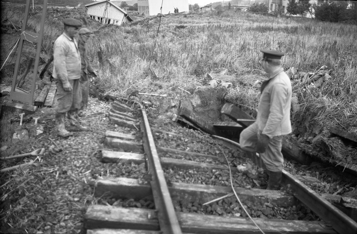 Surte-katastrofen. (kl. 8.16) . Fler än 30 bostadshus förstördes i jordskredet men bara en person omkom. Över 450 familjer blev hemlösa. Raserat järnvägsspår