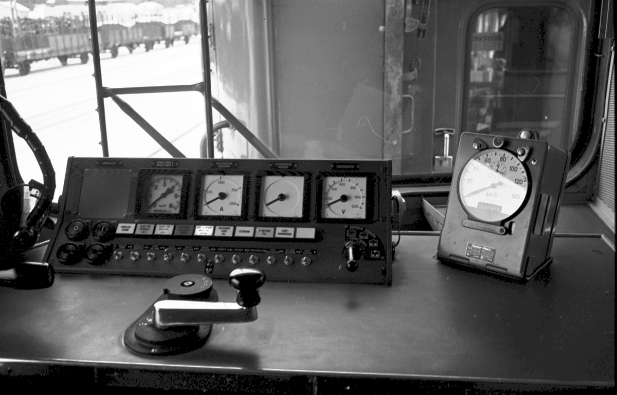Förarhytt, instrumentpanel. SJ Rb1 1001, provtur
