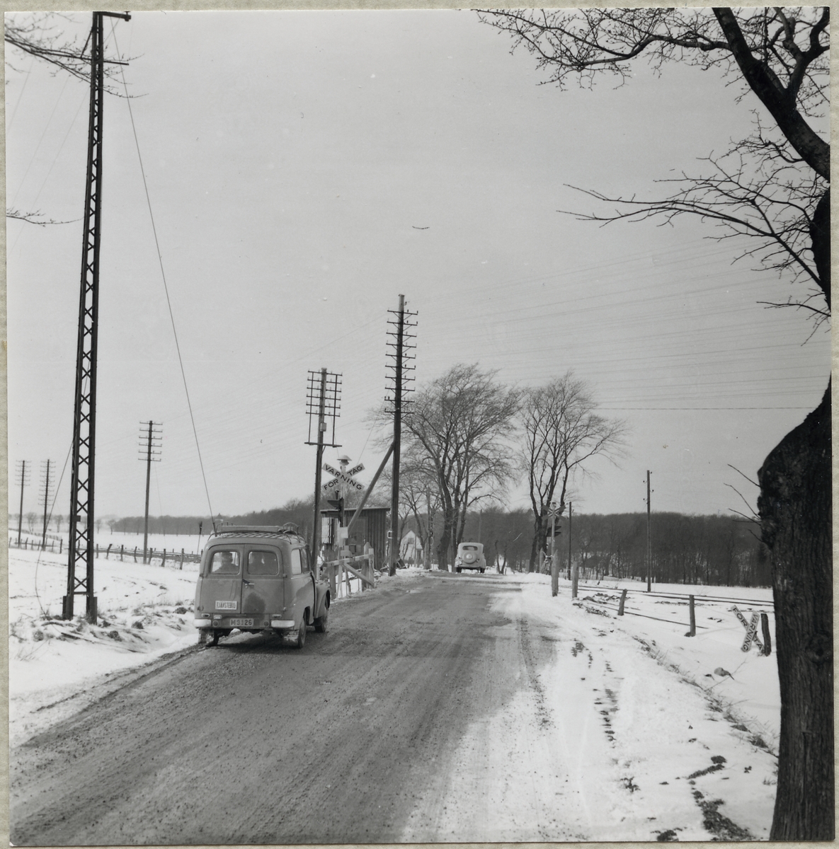 Järnvägsövergång med vaktkur vid Hundsäng på linjen mellan Skarhult och Hurva.