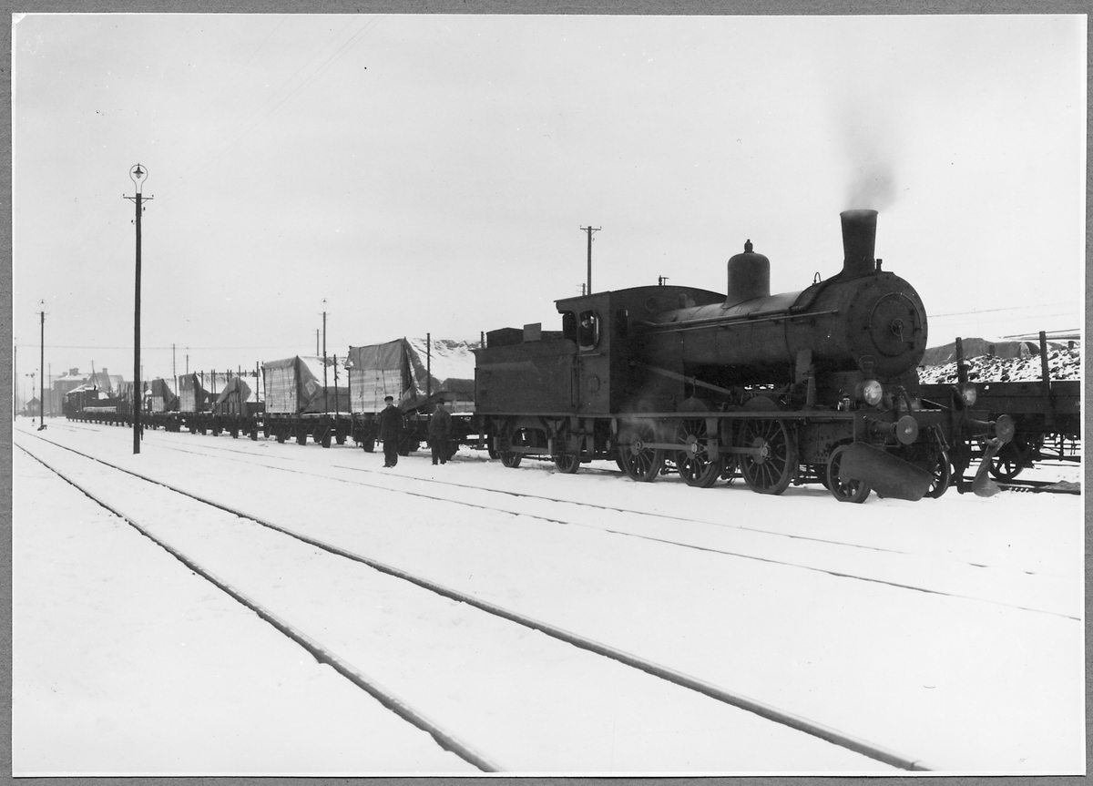 Stockholm Västerås Bergslagens Järnväg, SWB L 45, med godsvagnar på Västerås Central.
