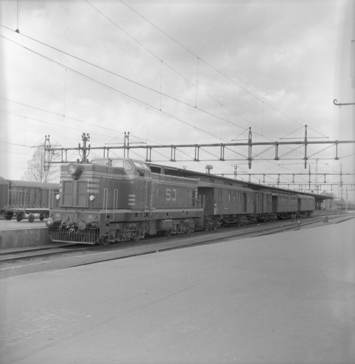 Titel: Statens Järnvägar, SJ T4 101 med tåg.