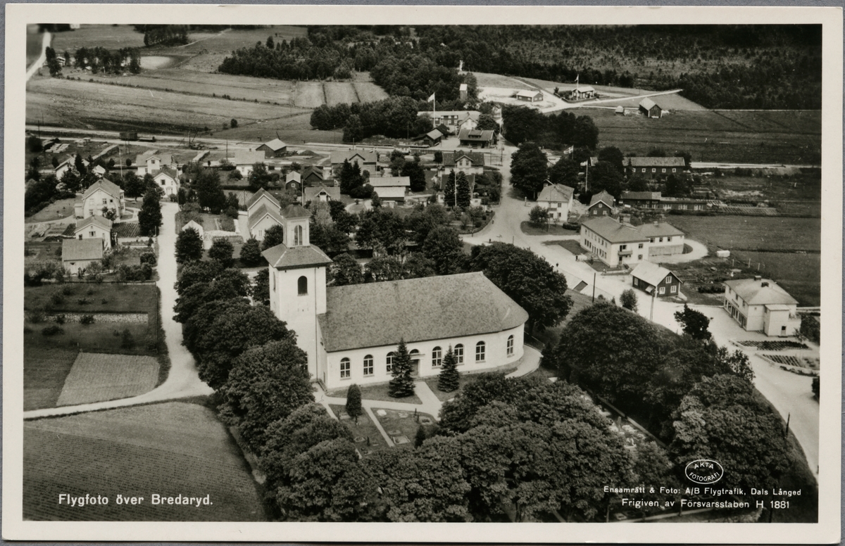 Vy över Bredaryd med kyrkan i förgrunden.