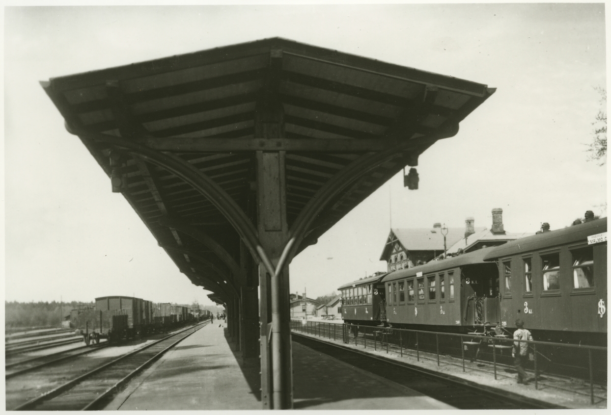 Statens Järnvägar, SJ personvagnar SJ C3e 2426 och SJ C3d 2169 stående vid Ängelholms station.