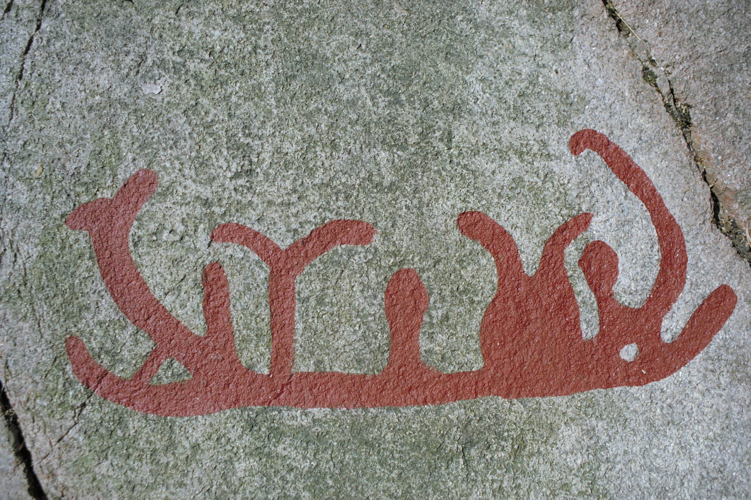 Skepp med höga stävar och bemanningsstreck. Tossene 73:1.