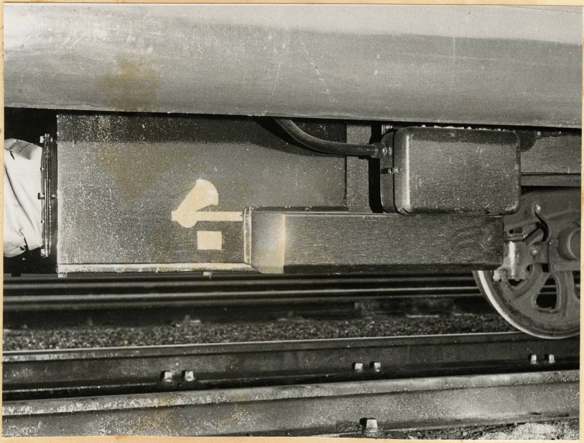 Detaljbild av motorvagn, lättviktståg. Trafikaktiebolaget Grängesberg - Oxelösunds Järnväg, TGOJ.