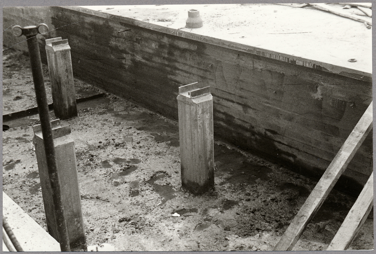 Betong fundament vid bygget av driftverkstaden.