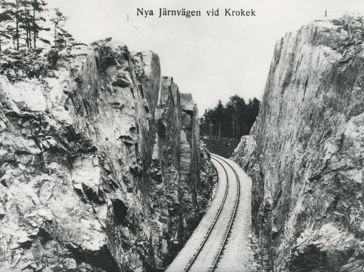 Bild på skärning genom berget, för nya stambanan Järna-Norrköping.