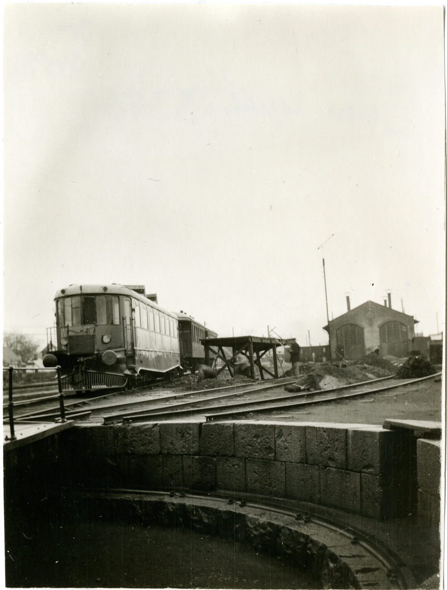 Höganäs lokstation med motorvagnen. Järnvägen från Kattarp till Höganäs öppnades 1885 av SHJ, Skåne - Hallands Järnväg. I Höganäs fanns då två stationer, Höganäs Övre och Höganäs Nedre. Efter 1919 blev det en station istället för Höganäs Övre och Höganäs Nedre. En stor ombyggnad ägde rum 1936. Nedlagd 1992.