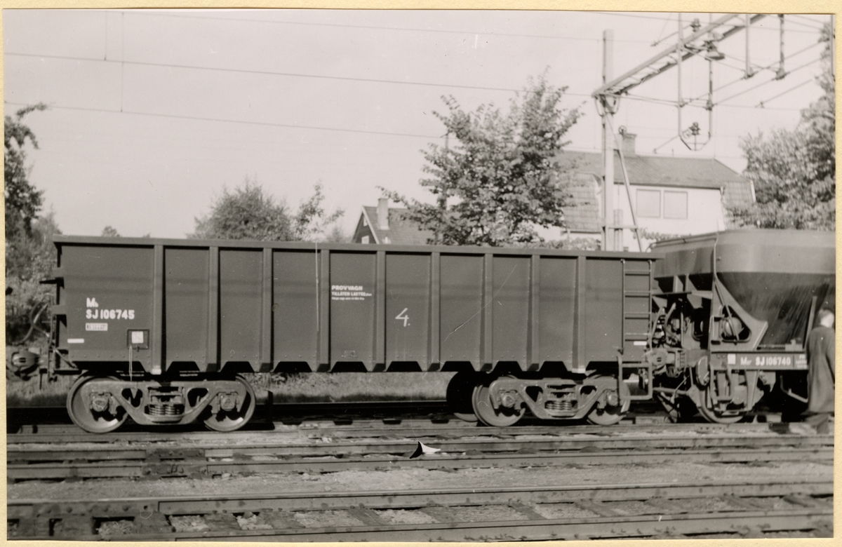 Statens Järnvägar, SJ Mb 106745, provvagn, malmvagn. Till höger ses även SJ Mar 106740.
