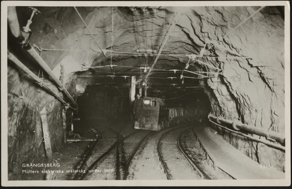 Transport av malm med ellok i Grängesbergs gruvor.