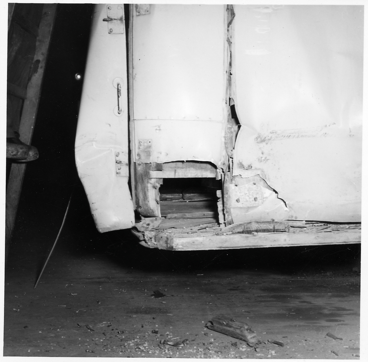 Detaljer på krockskadade bussen, Statens Järnvägars, SJ 2311.