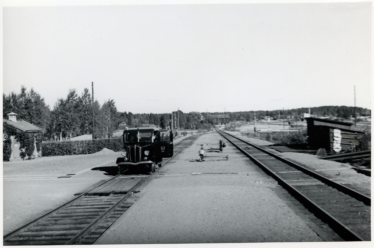 Bangården i Lindefallet. Statens Järnvägar, SJ dressin 142.
