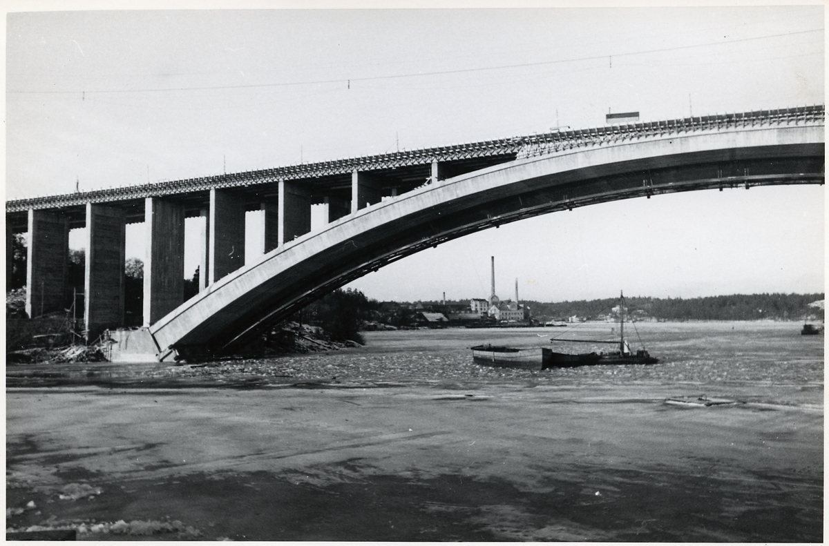 Byggnation av Tranebergsbron. Bron sträcker sig över Tranebergssundet mellan Kungsholmen och Traneberg.