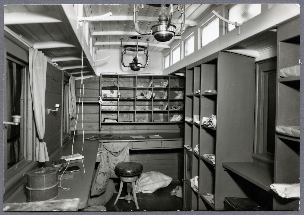 Interiör av postvagn Hjo - Stenstorps Järnväg, HSJ.