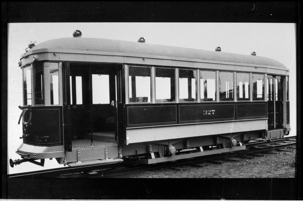Leveransbild på Helsingin Raitiotie- ja Omnibus Osakeyhtiö, HRO släpvagn 327.