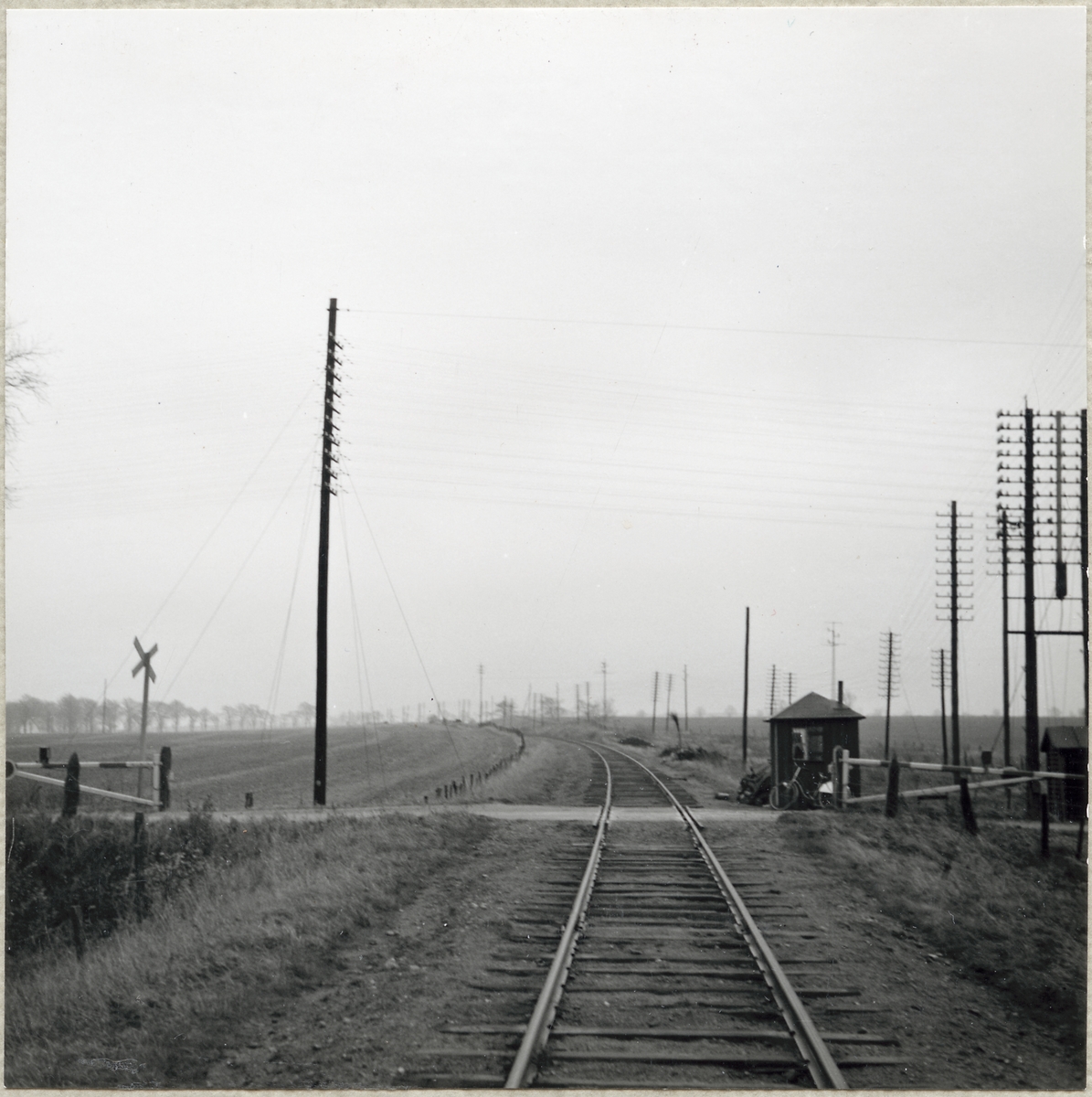 Titel: Järnvägsövergång med vaktkur vid Östra Strö på linjen mellan Skarhult och Hurva.