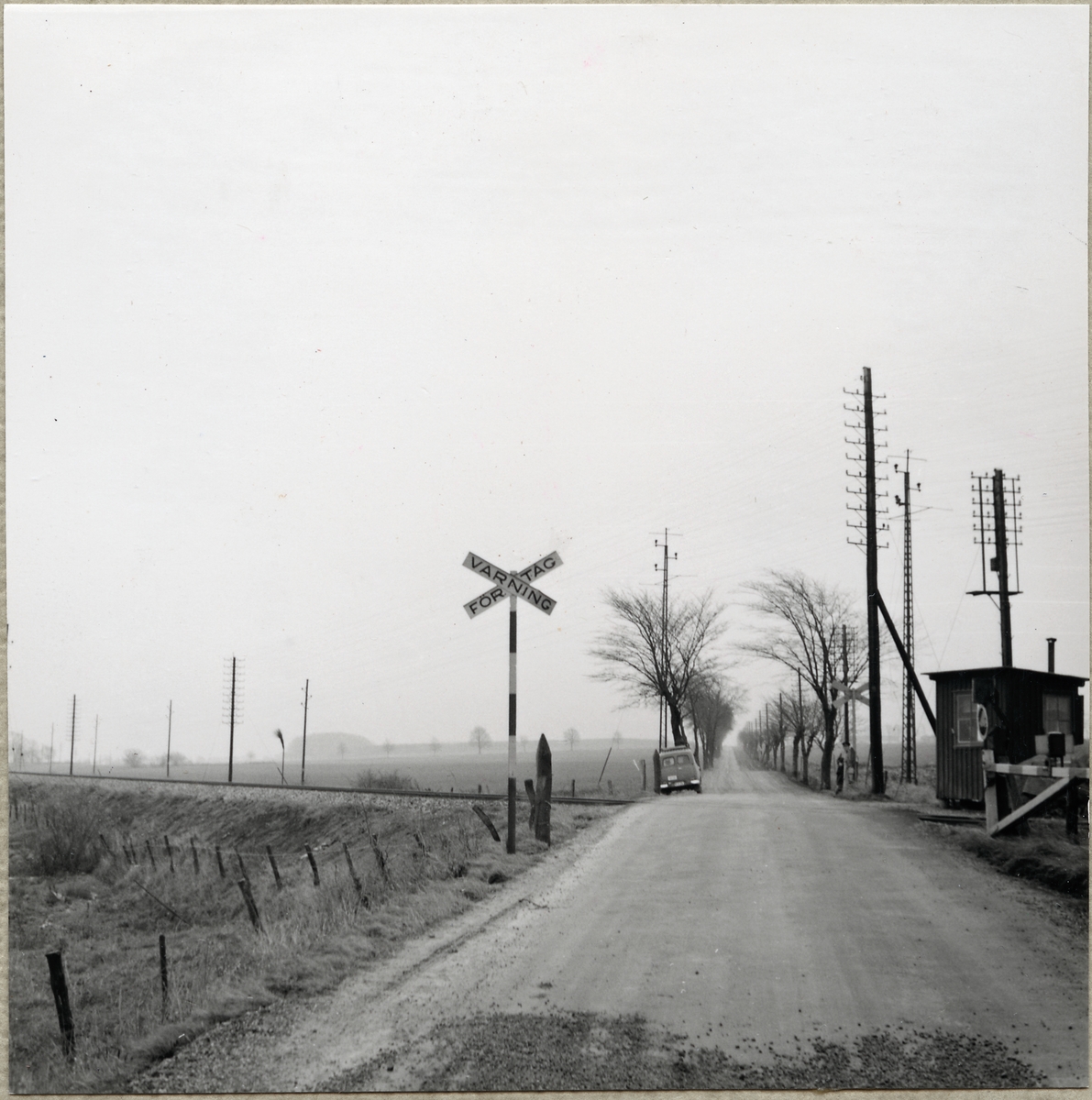 Järnvägsövergång med vaktkur vid Hundsäng på linjen mellan Skarhult och Hurva.