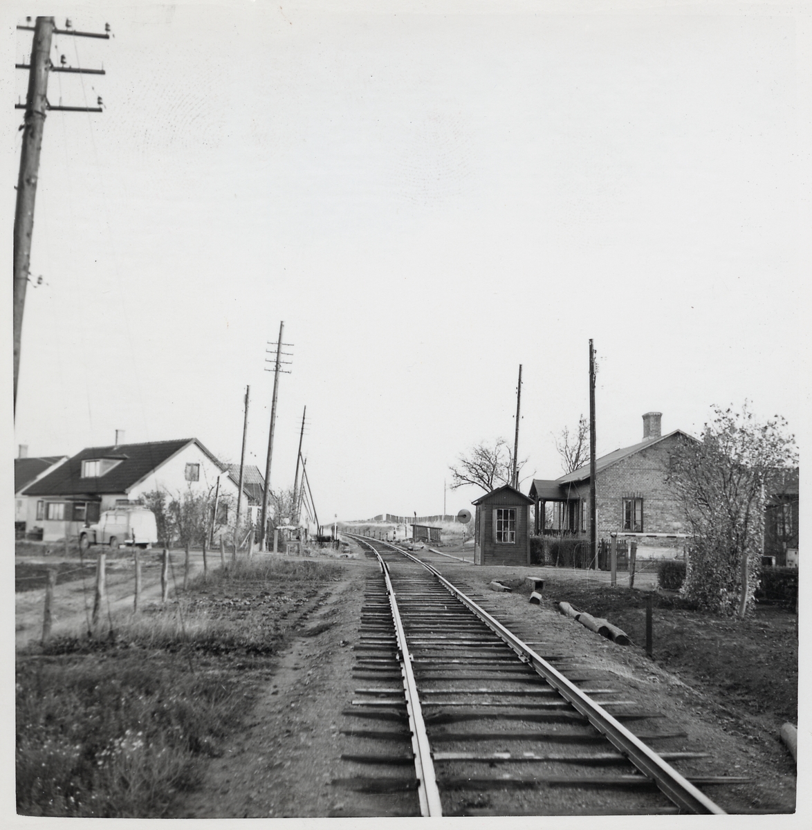 Järnvägsövergång med vaktkur vid Köpinge på linjen mellan Svenstorp och Köpingebro.