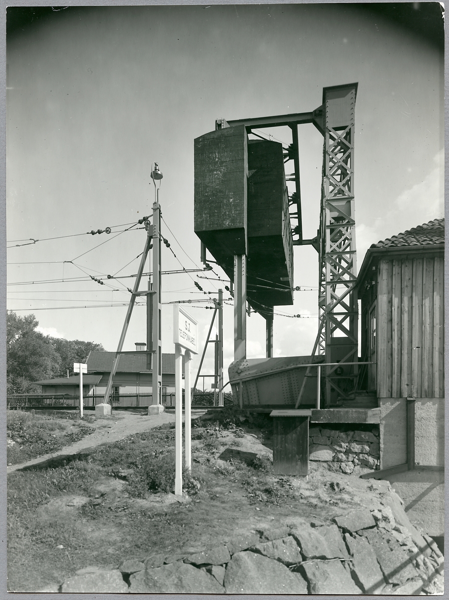 Detalj av kontaktledning vid en fällbar järnvägsbro.
