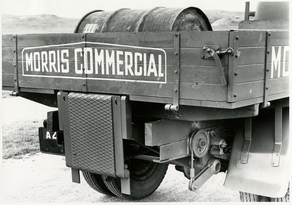 Titel: Detaljbild på bakgavellyft på lastbil.