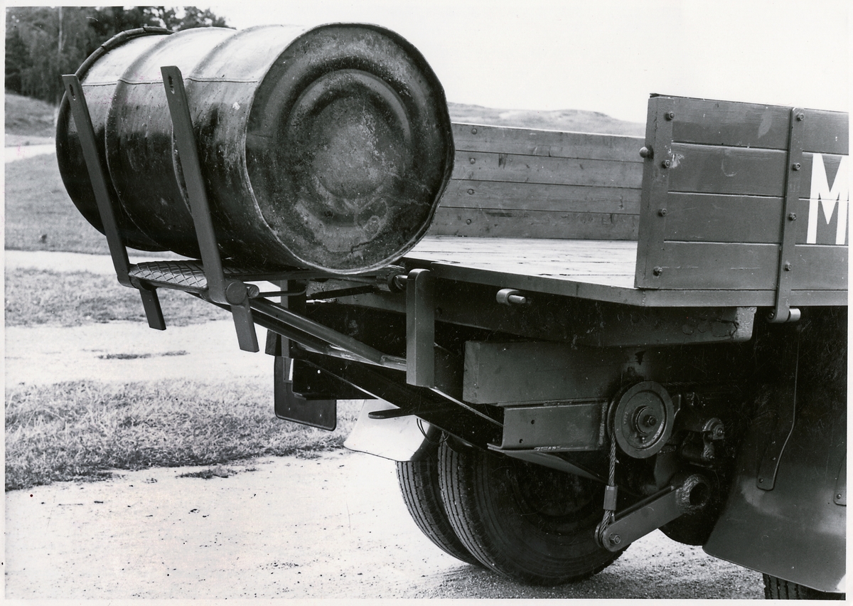 Titel: Detaljbild på bakgavelslyft på lastbil.