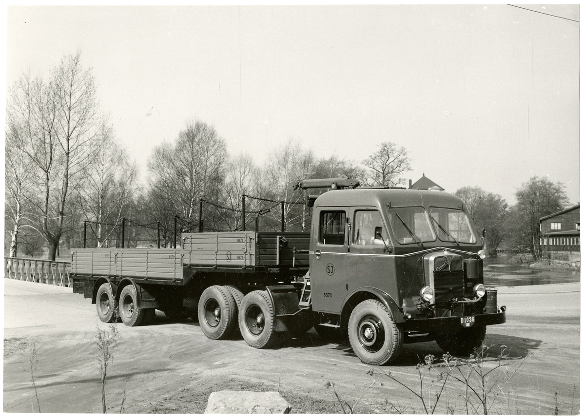 Statens Järnvägar, SJ Lastbil 3372 med trailer 8171. AEC Mammoth Major 6 Mk III med trailer.