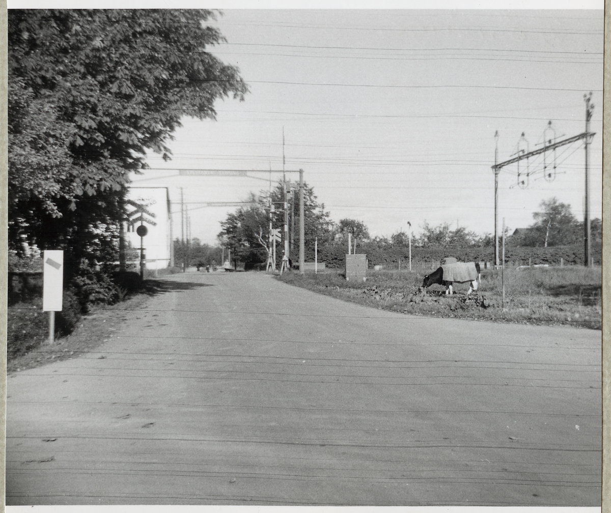 Titel: Järnvägsövergång vid Trönninge på linjen mellan Halmstad och Eldsberga.