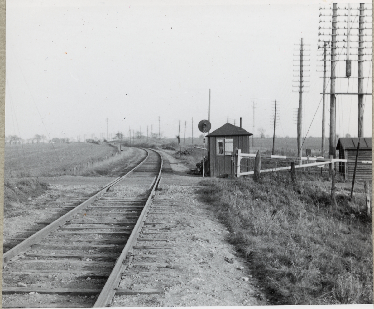 Järnvägsövergång med vaktkur vid Östra Strö på linjen mellan Skarhult och Hurva.