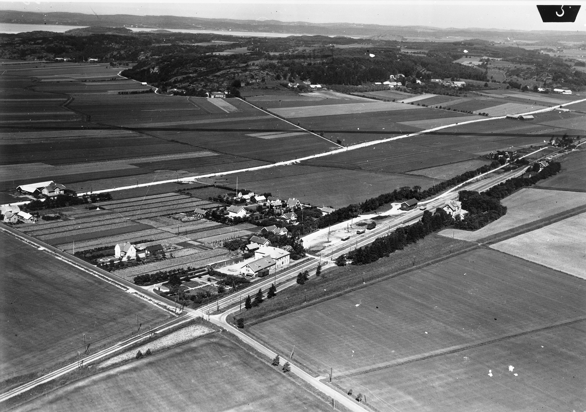 Flygfotografi över Fjärås station med omnejd.