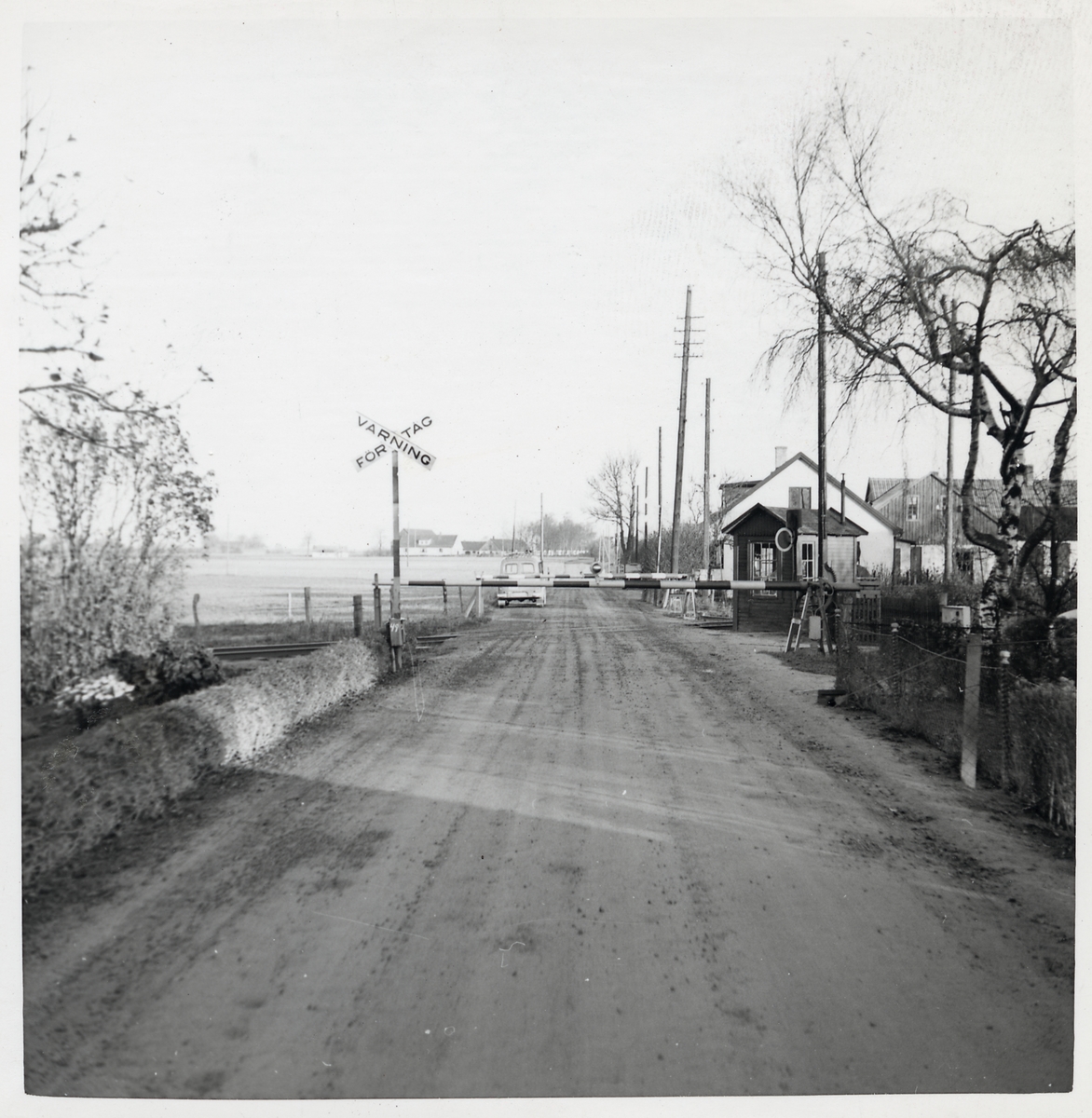 Järnvägsövergång med vaktkur i Köpinge på linjen mellan Svenstorp och Köpingebro.