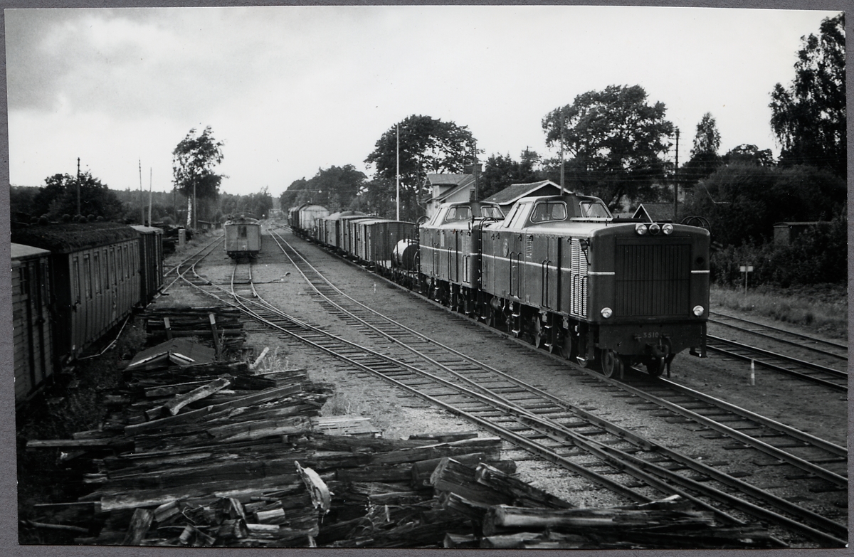 Statens Järnvägar, SJ Tp 3501 och SJ Tp 3504 passerar Jenny med fjärrgodståg.