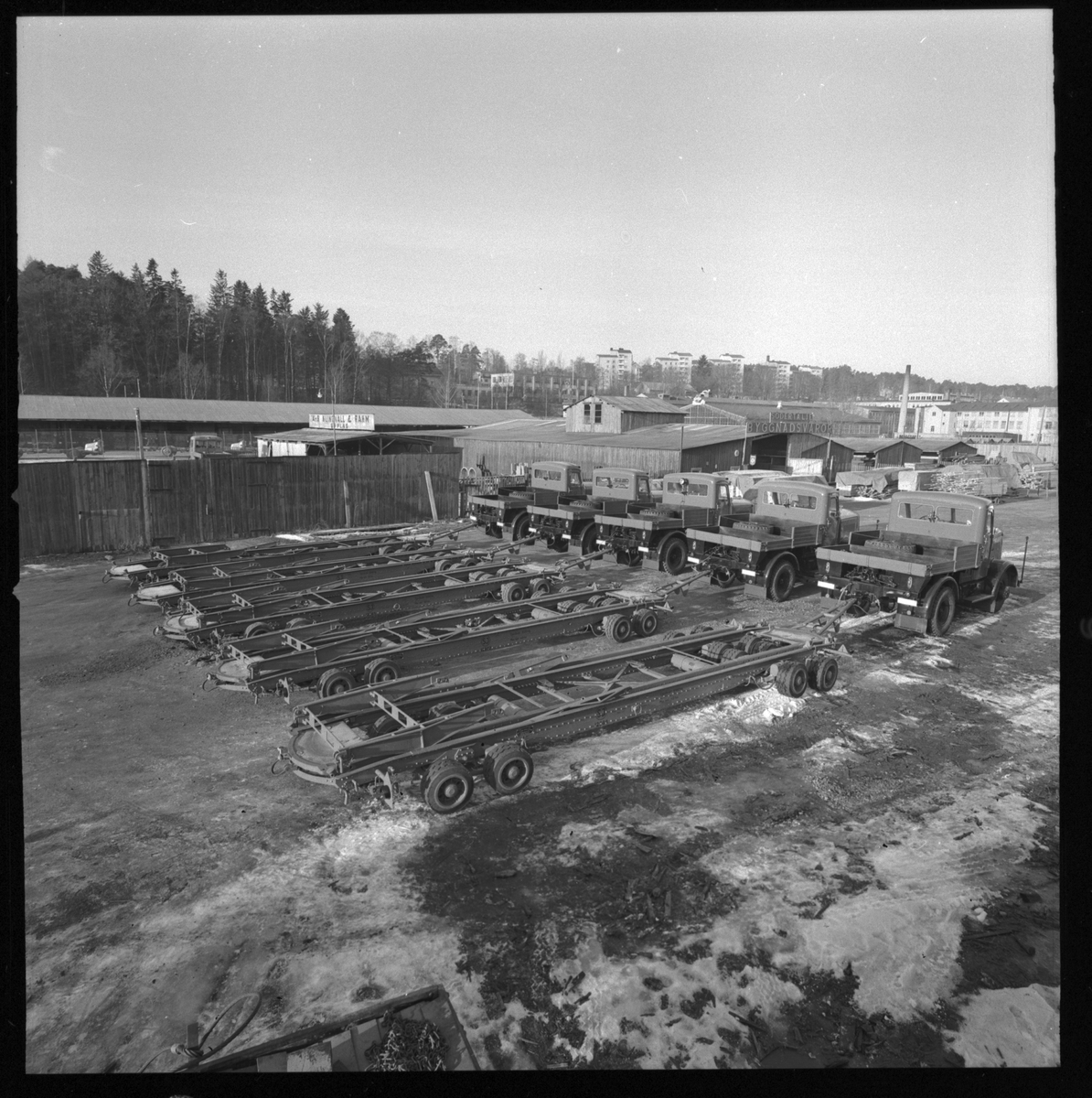 Dragfordon av märket Kaelble med vagnbjörn släp.